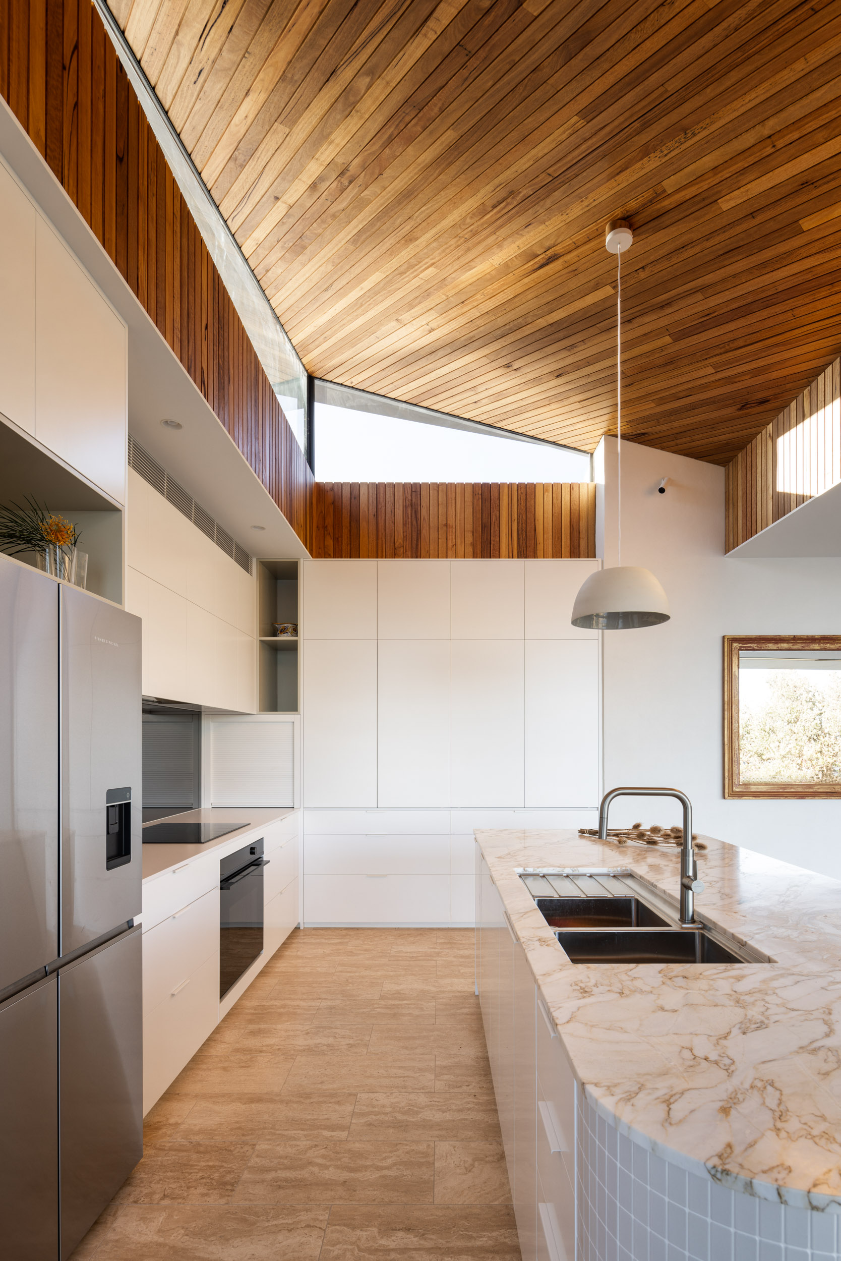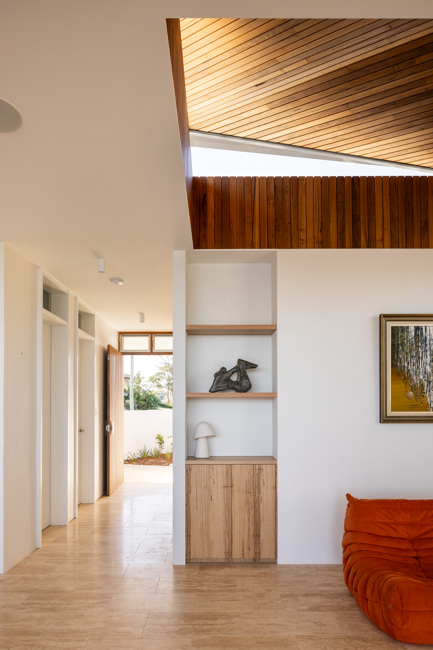The significantly altered floor plan is compact and efficient, maximizing integrated storage that has been designed in detail to accommodate the clients active lifestyle.