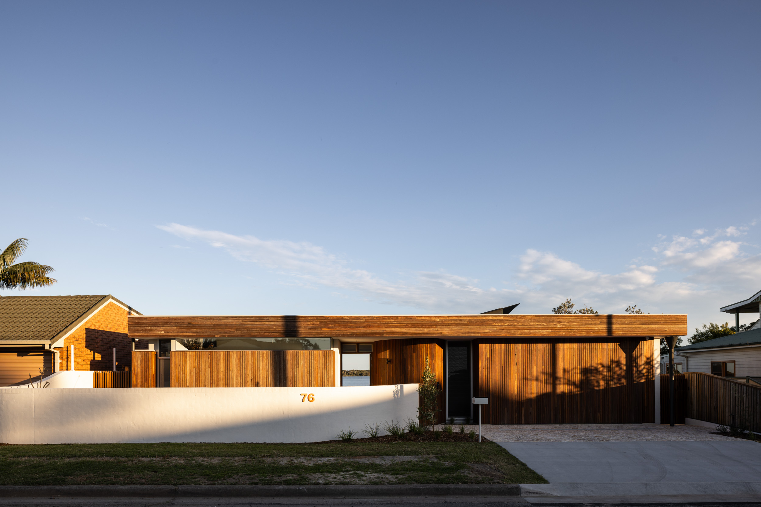 The open plan living space opens out onto the Shoalhaven River to the south, with northern sunlight captured through two glazed light boxes popping up out of the otherwise discreet new roof. Externally, vertical Australian hardwood cladding provides a sleek new skin to the previously outdated and undistinctive home.