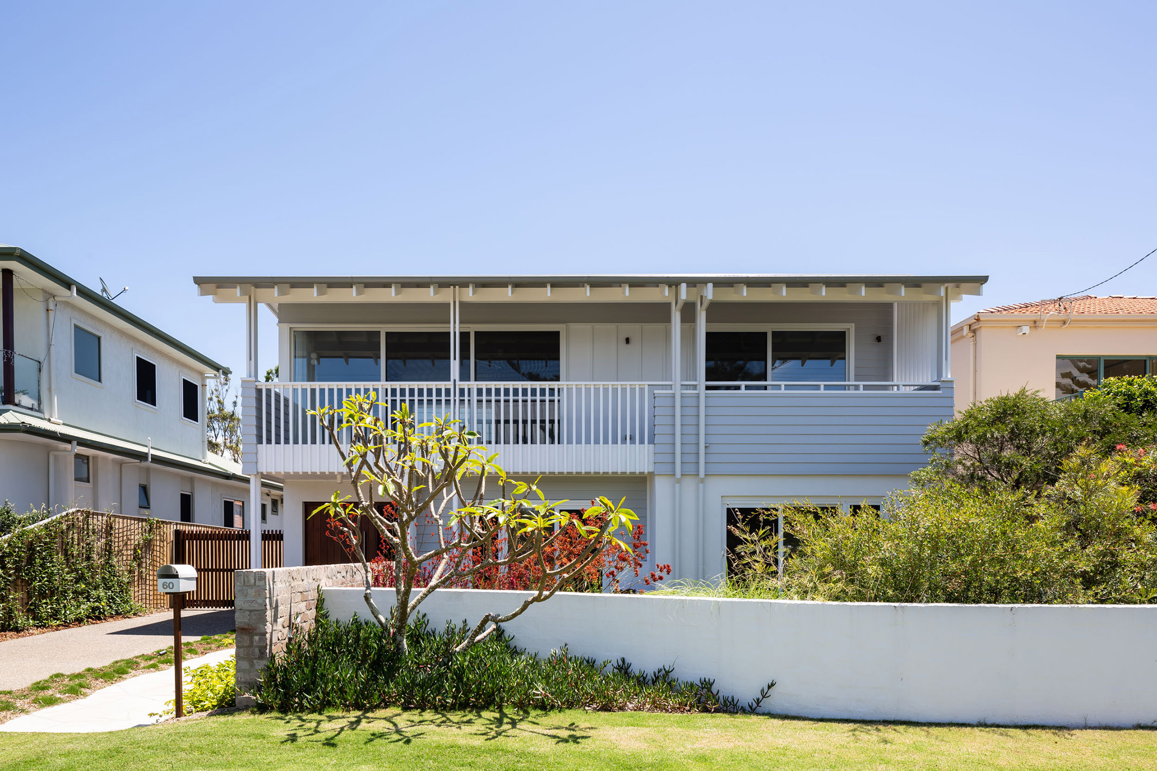 The previously dated interior has been whitewashed throughout and is now flooded with natural light. With the integration of environmentally sustainable systems, a new roof and coastal style cladding has completed the upgrade of the building into a contemporary twenty-first century beachside residence.