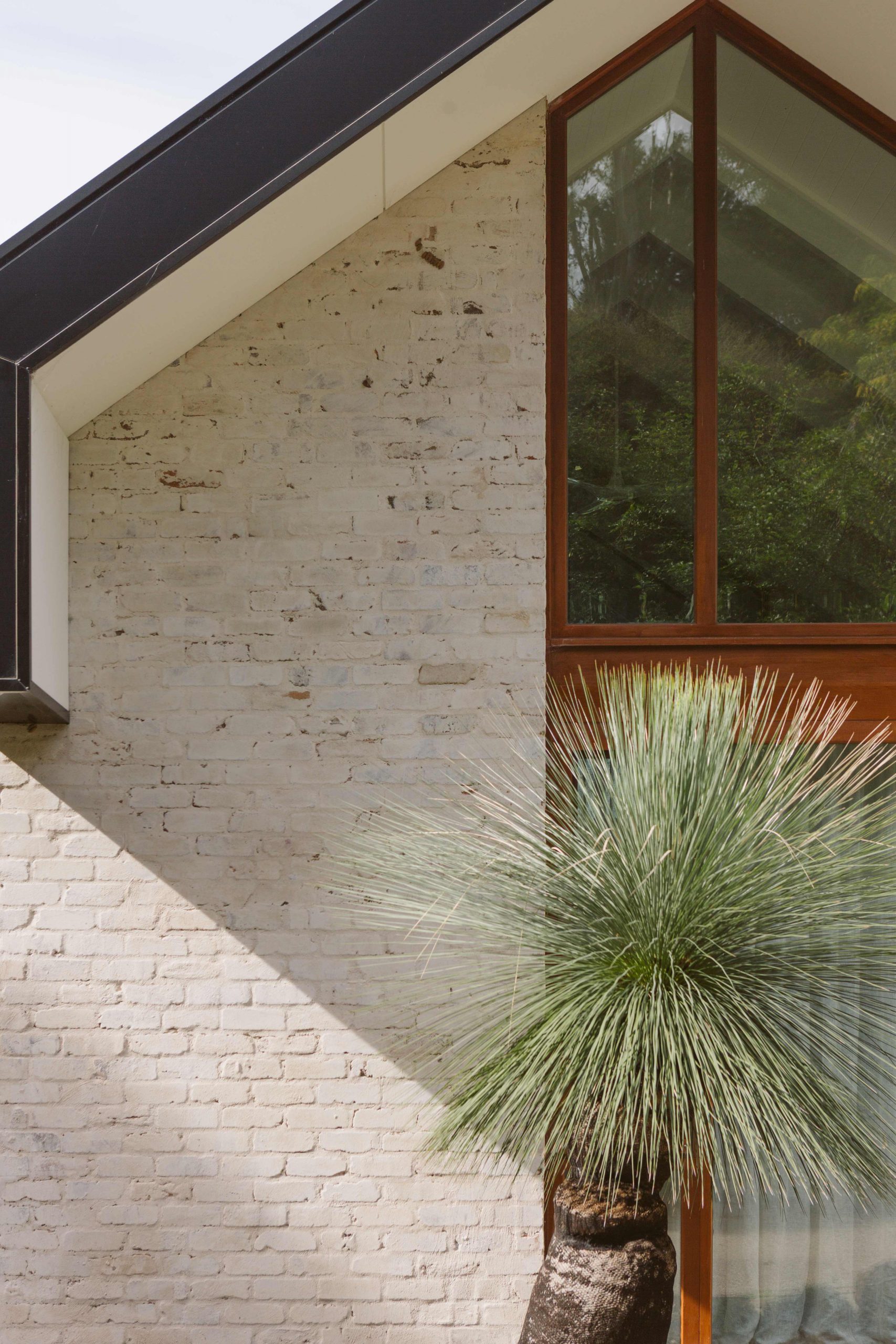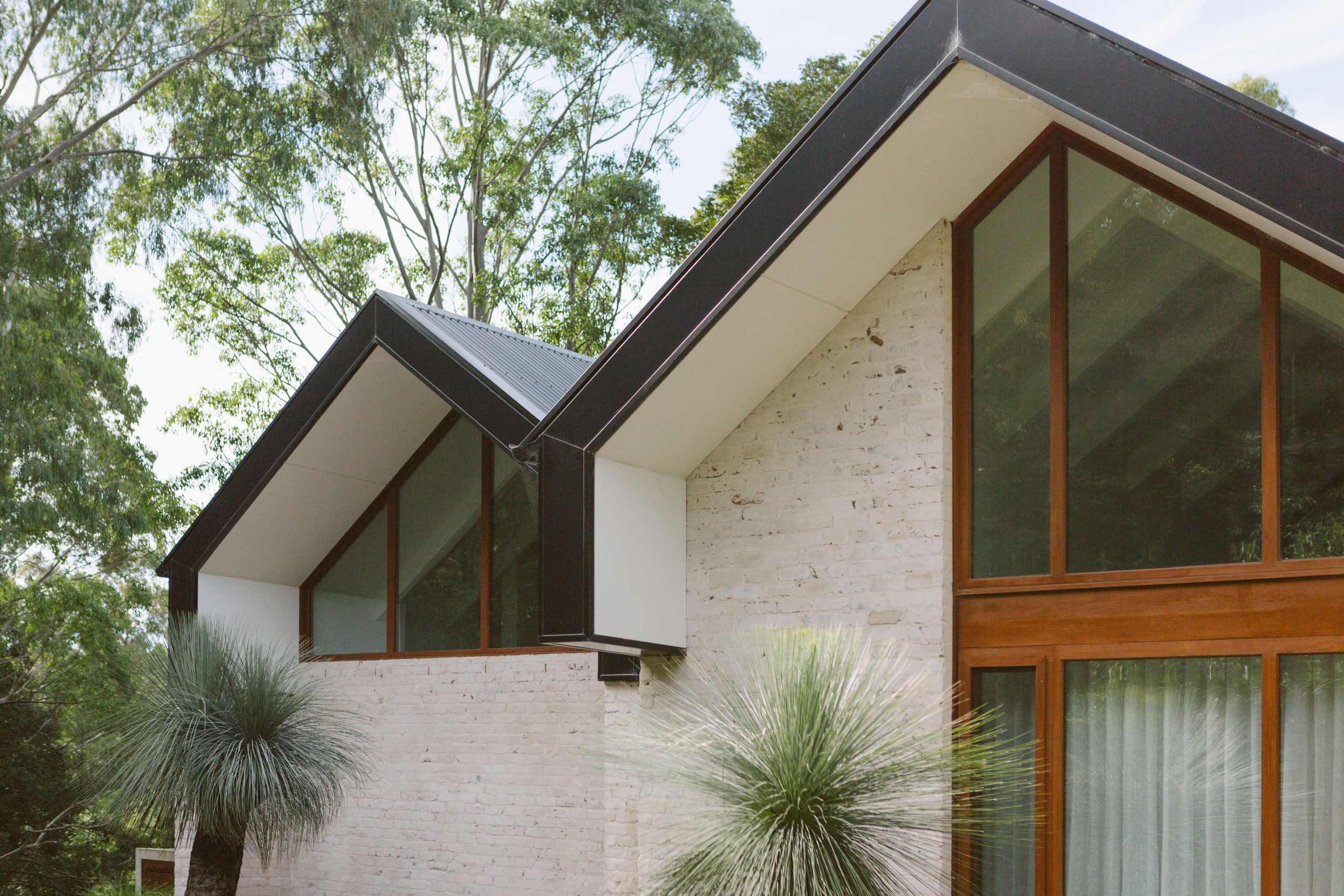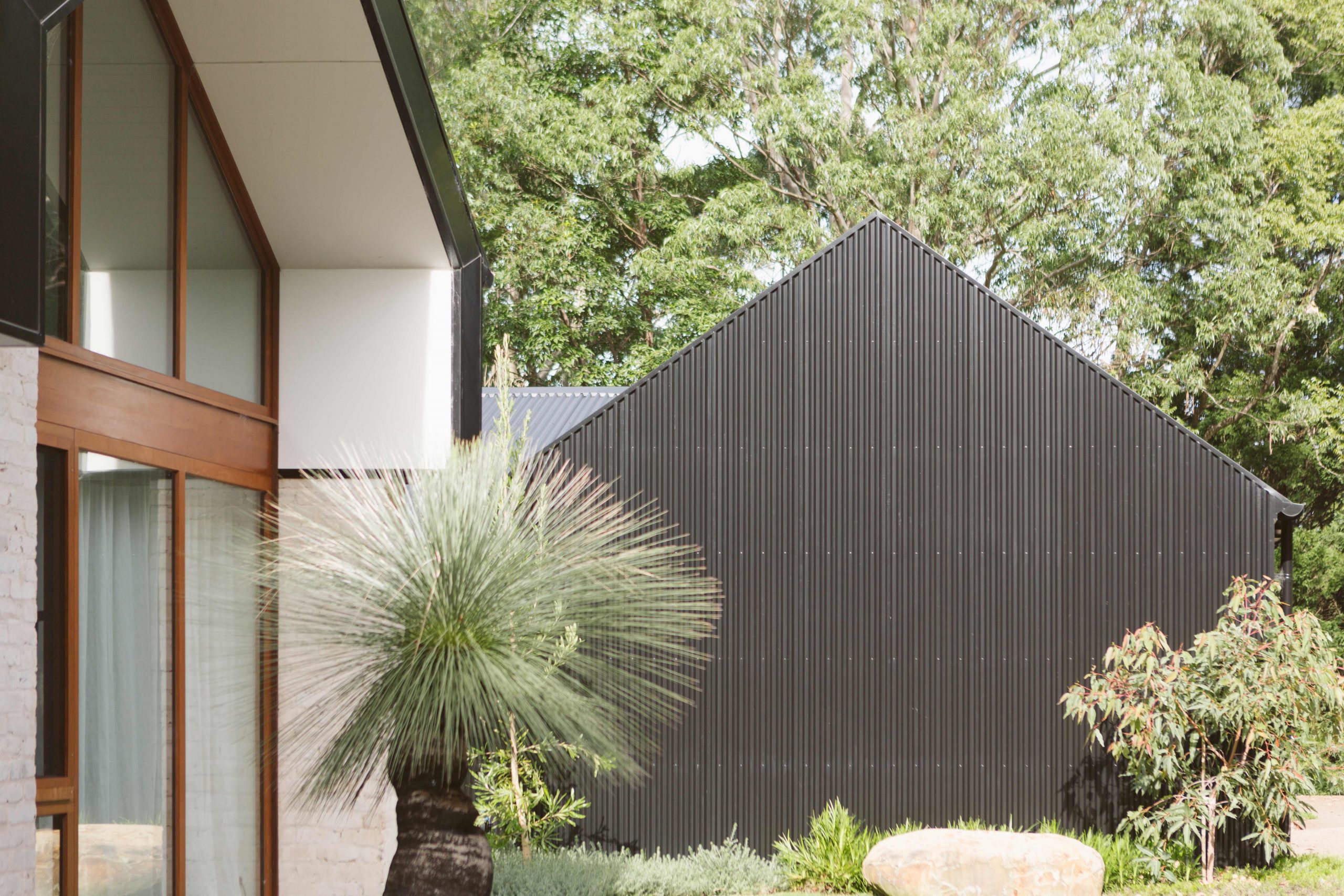 The concrete slab, structural framework and parts of the roof of an existing homestead were retained and added to, creating a sprawling seven bedroom residence. A monumental main room incorporates an open gable roof form, providing an oversized kitchen, dining, and living space fitting for large gatherings. Adjacent, two more moderately scaled rooms provide additional space for guests to spill into, or a more intimate living zone for the couple to enjoy when staying at the property alone.