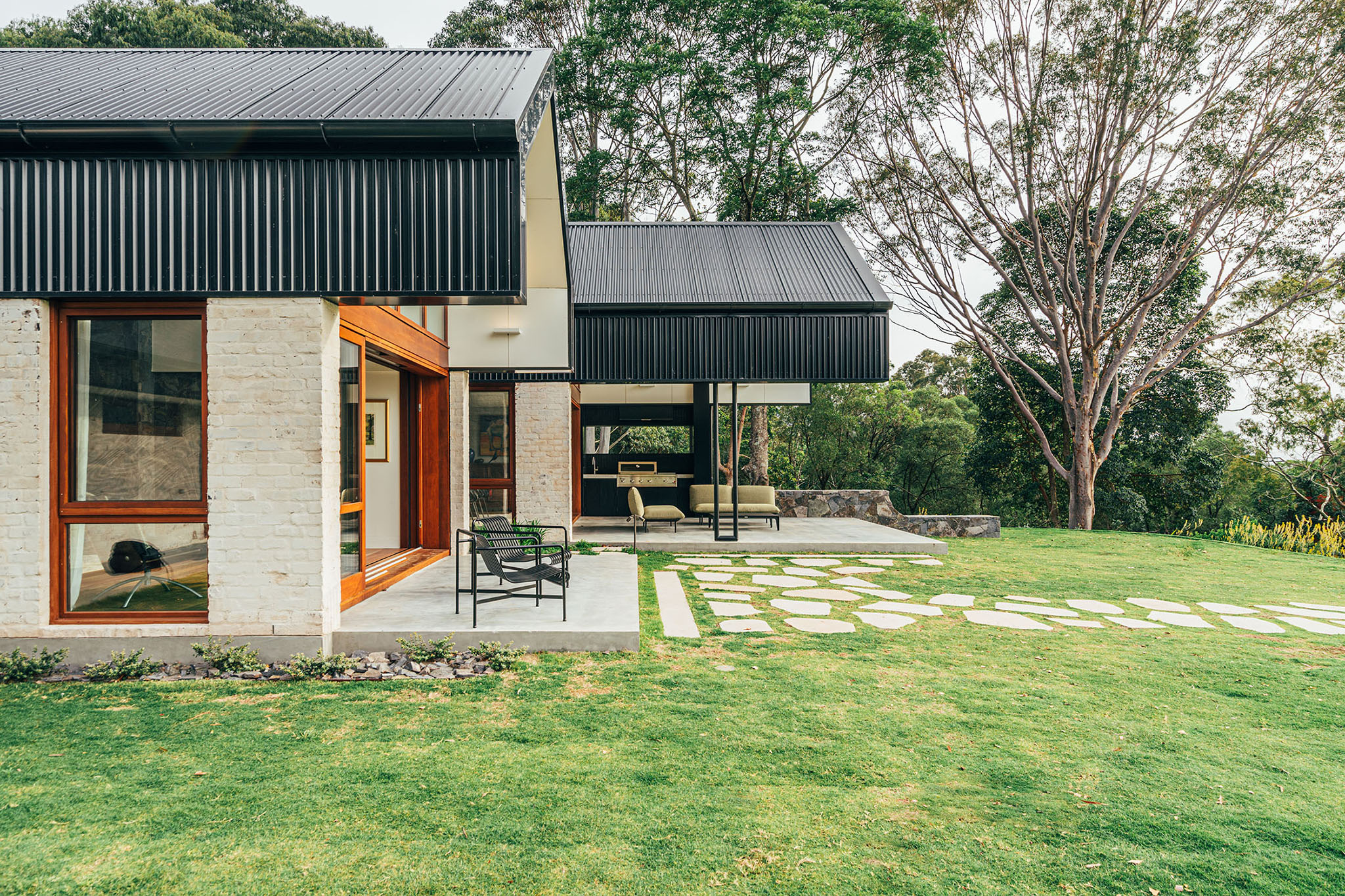 To complete the project, vast new landscaping works were carried out, incorporating multiple outdoor entertaining areas, a pool, and tennis court. The property sits within the highest risk bushfire zone with all new construction, materiality, fixtures and fittings designed to comply with strict BAL flame zone requirements.