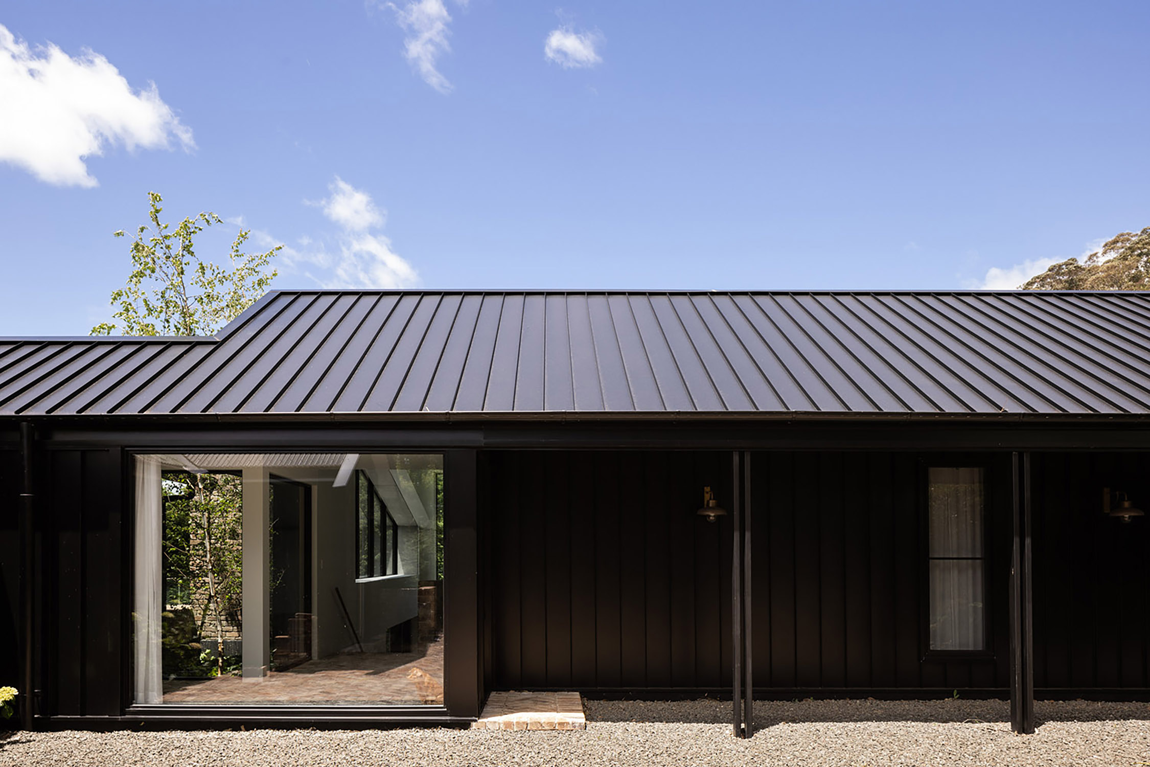A contemporary addition to extend and improve a country retreat for a Sydney based family. A glass entry links the new structure to the existing cedar clad building forming a large, sheltered courtyard where the old and new wings meet.